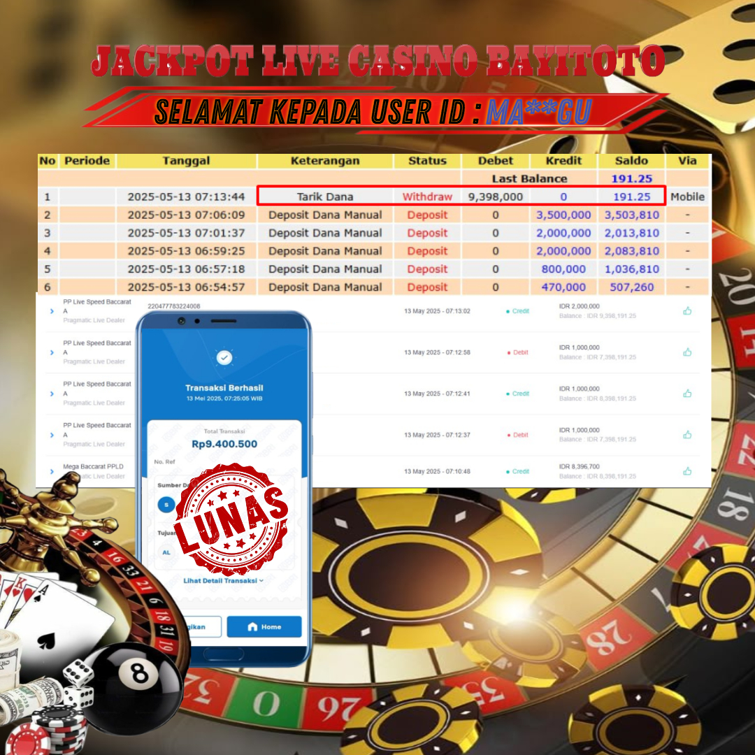 Selamat kepada User id : MA**GU Telah berhasil mendapatkan kemenangan besar pada